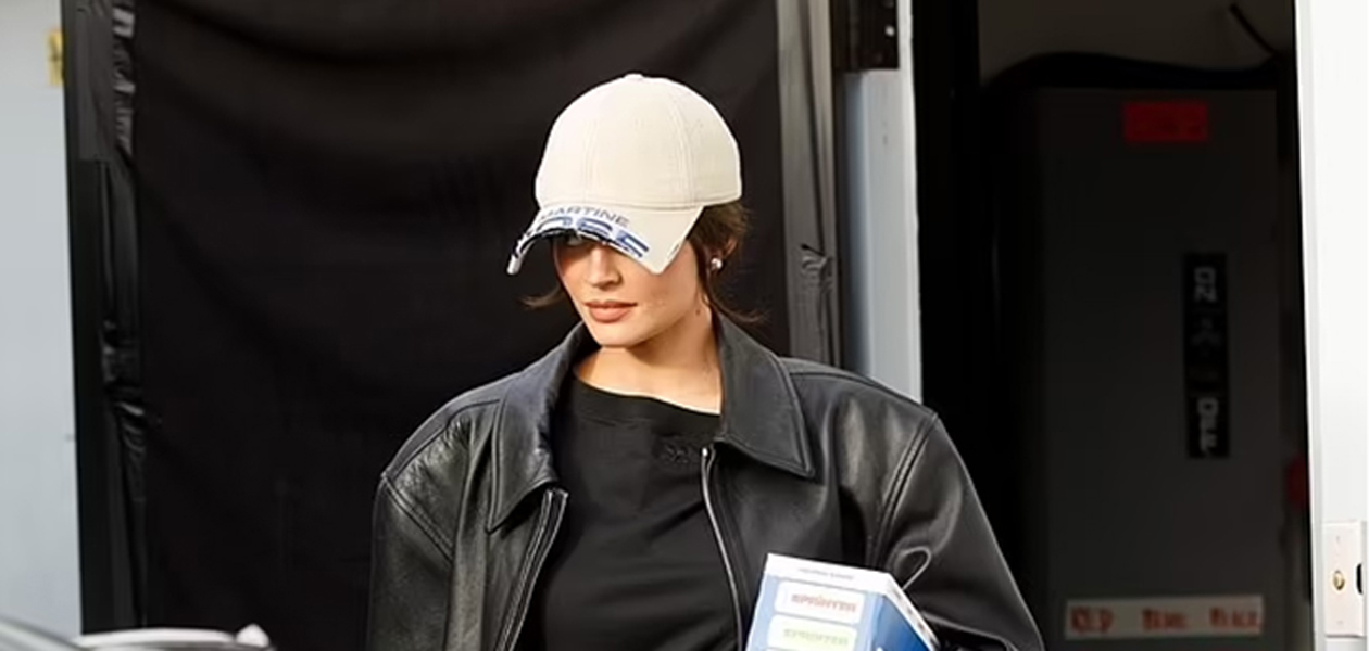 With her phone in one hand and the box of canned alcoholic beverages in the other, Jenner exuded confidence as she prepared to depart. Her makeup was flawlessly executed, featuring peach-toned blush and a pinkish-brown lip combo, accentuated by dainty stud earrings. Although the seltzers weren't from her sister Kendall Jenner's 818 tequila brand, Kylie's outing coincided with her announcement of a new business venture.