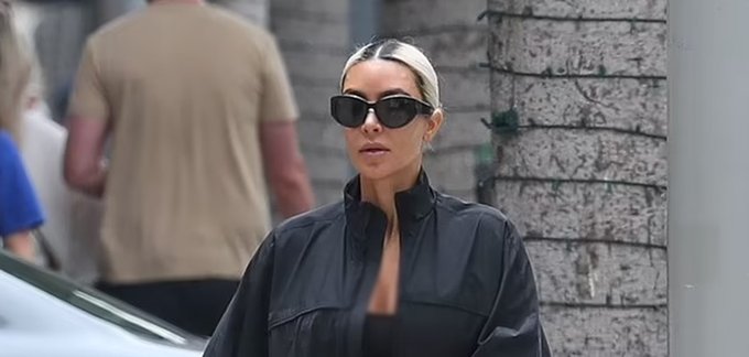 For her outing, she opted for a casual look, wearing baggy black sweatpants, a windbreaker jacket over a tiny black bandeau top, slide sandals, and slicked-back bleach-blond hair styled in a bun. She accessorized with sunglasses and carried her iPhone instead of a purse. Kim shared her experience at Epione on her Instagram Story, introducing Dr. Ourian to her followers. Over the years, she has frequently turned to him to maintain her youthful, fresh skin. Dr. Ourian is a go-to dermatologist for many models and Hollywood stars and treats Kim's entire family.