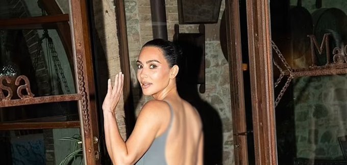 | Kim Kardashian Showcases Curves in Sheer Backless Grey Dress at Tuscany Dinner After Attending £250M Mumbai Wedding |